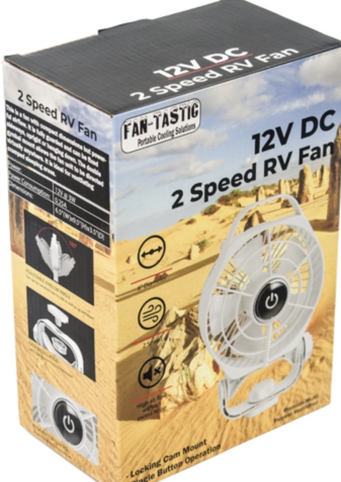 This Fan is quiet but has a powerful air flow. Cigarette plug attachment 1.5m cord. Fully guarded and can be fixed sideways, upright or hanging down. The double gymbal mount allows the fan unit to be directed virtually anywhere. 2 speed Adjustable airblow angle. Easy installation with a permanent mounting bracket. Push Button Control.12V @ 3W. Power consumption 0.25A. Dimensions 6.5″(W) x 9.5″(H) x 3.5″(D)