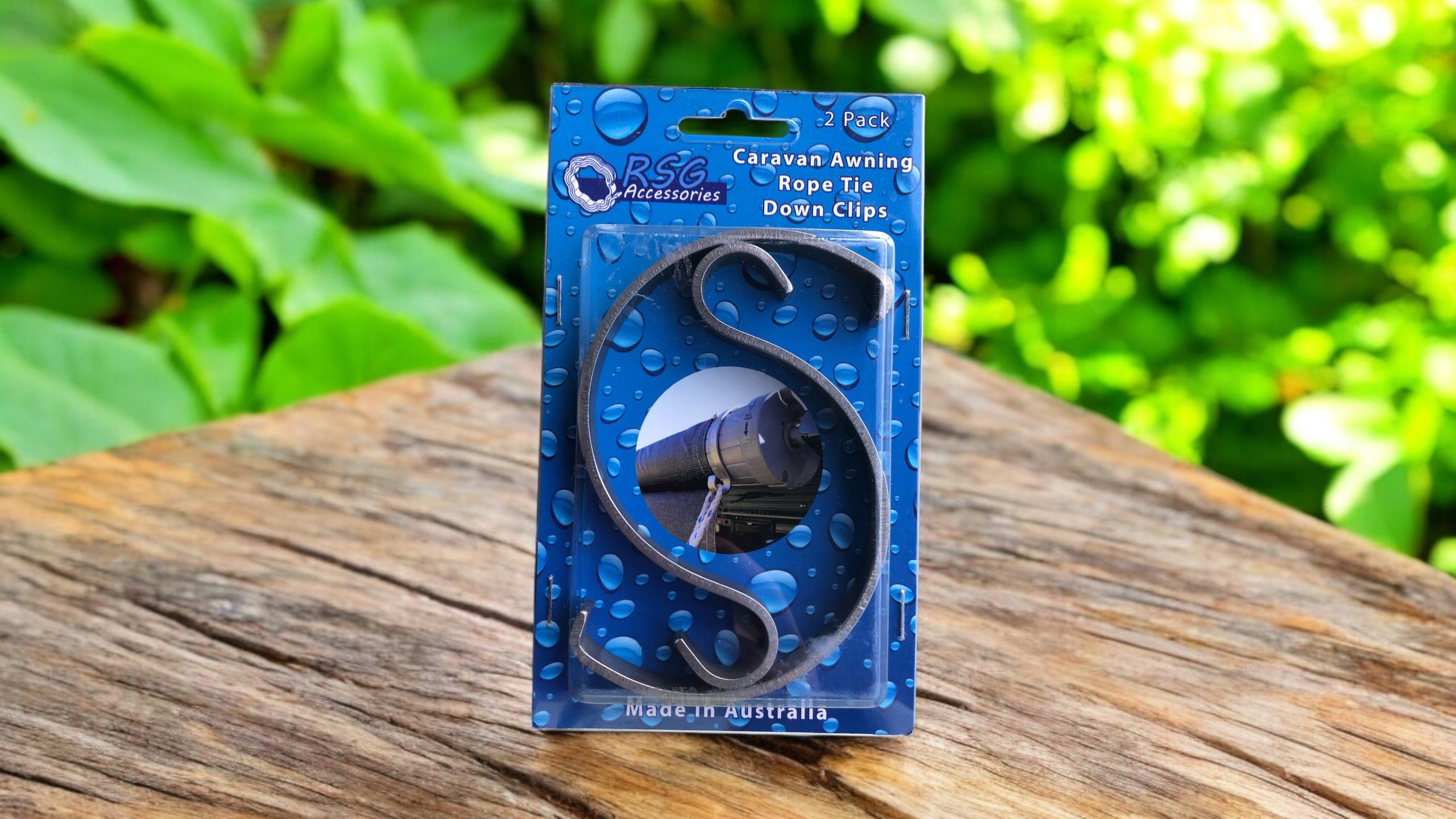 The Awning Tie Down Clips simply clip over your awning barrel, when rolled out to help secure and tie-down your awning.